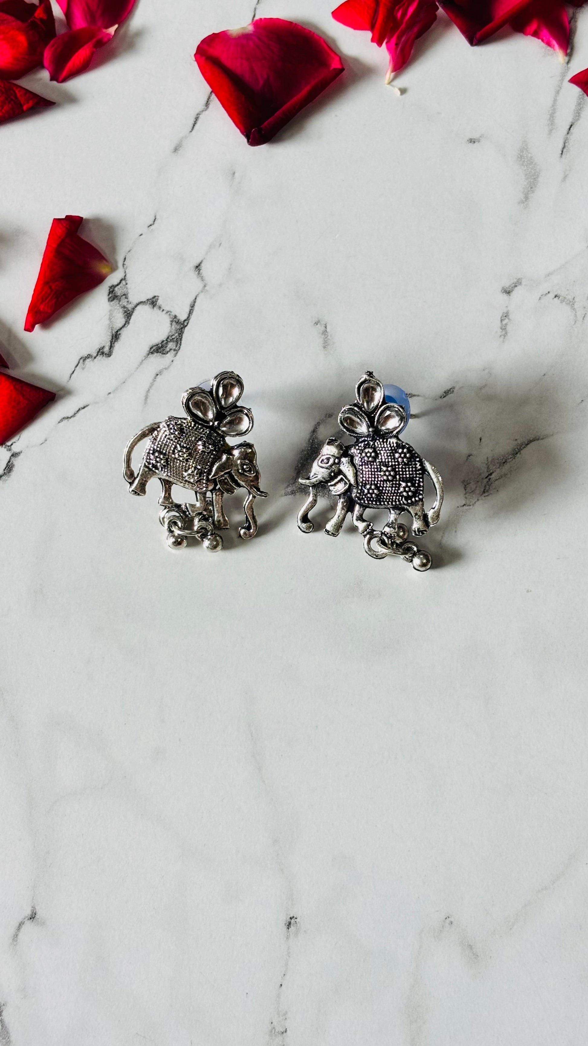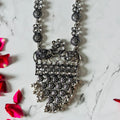 Antique Oxidised Elephant Floral Pendant Long Necklace Set