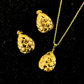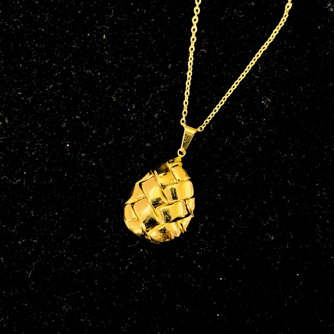 Basket Weave Oval Pendant Necklace Set – Anti-Tarnish Stainless Steel Gold Jewelry