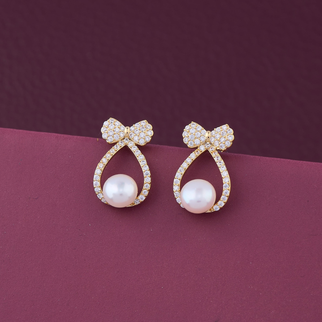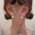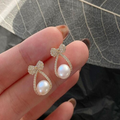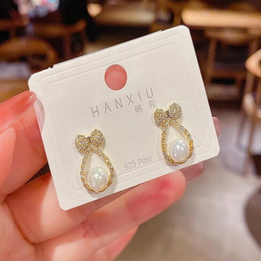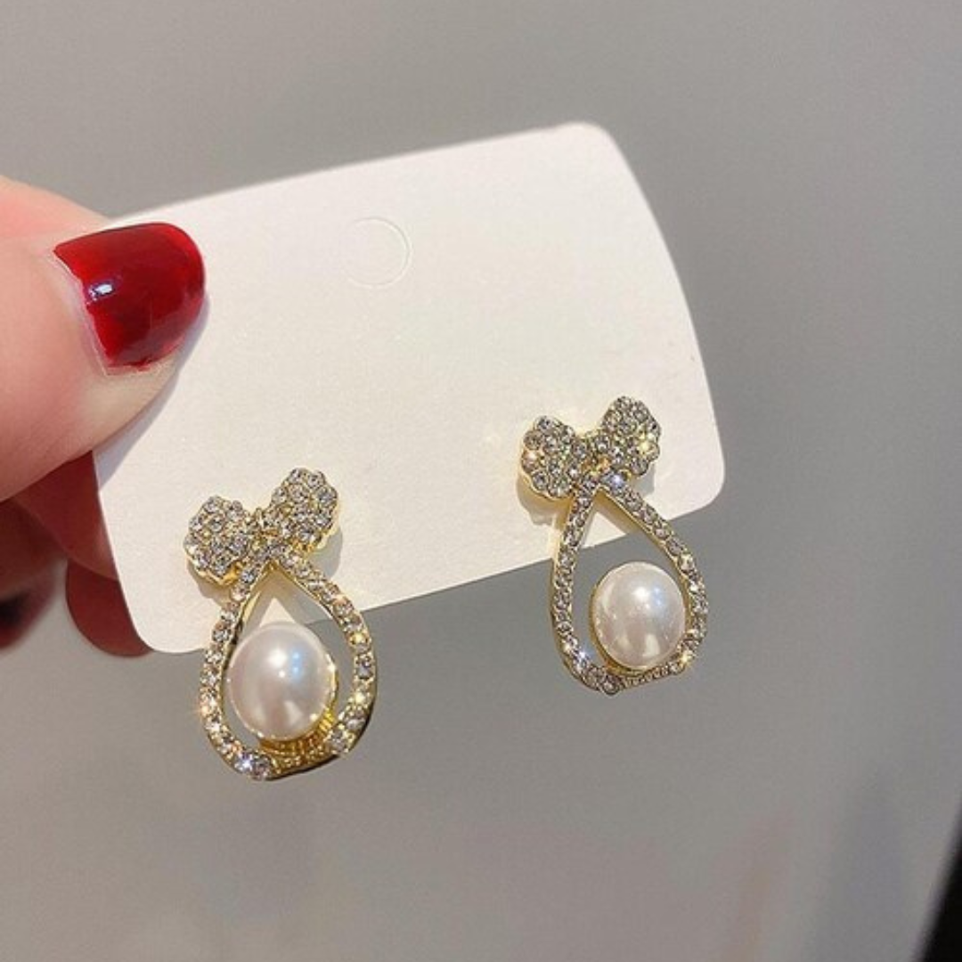 Bow Pearl Crystal Drop Earrings