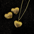Classic Ribbed Heart Charm Necklace Set – Anti-Tarnish Stainless Steel Gold Jewelry