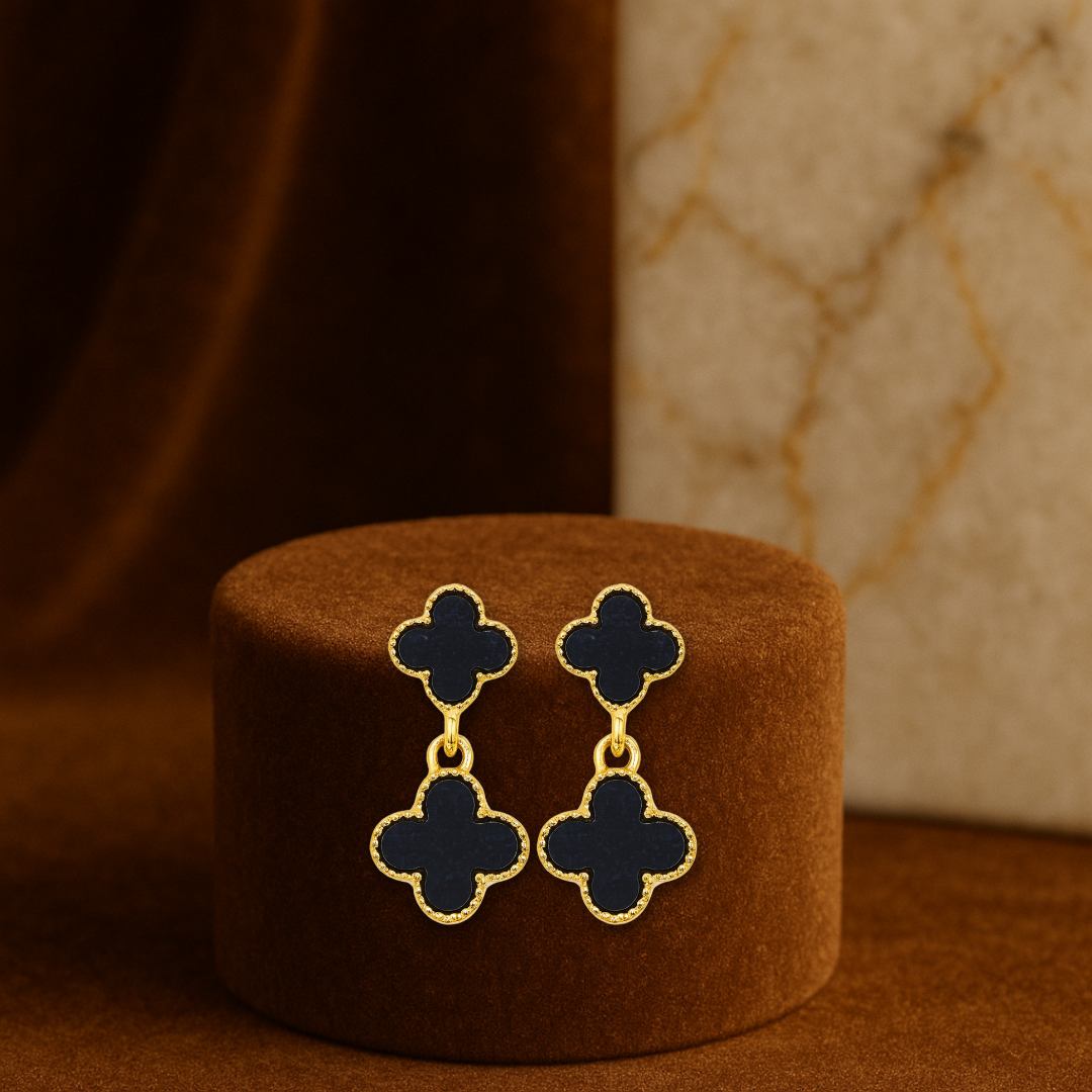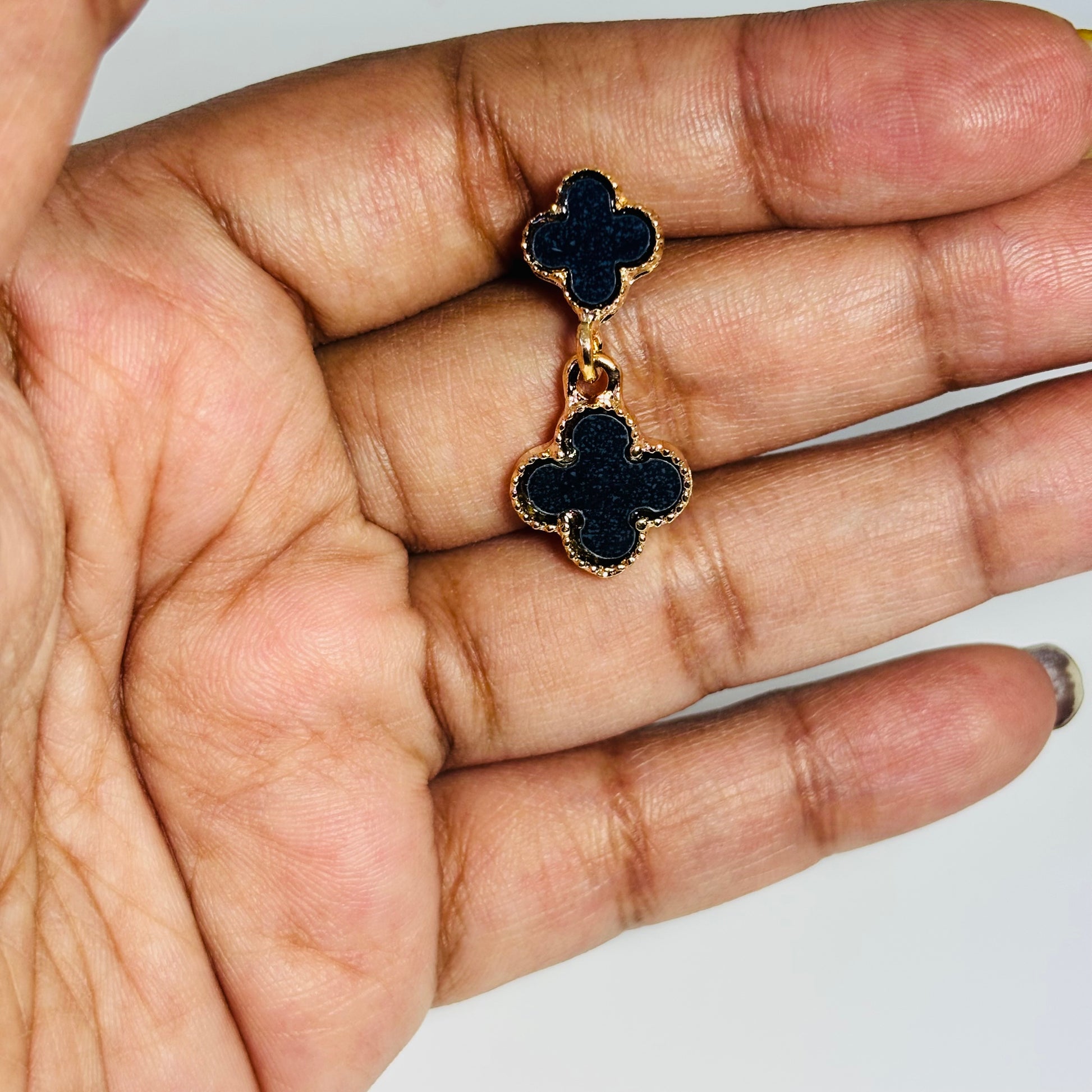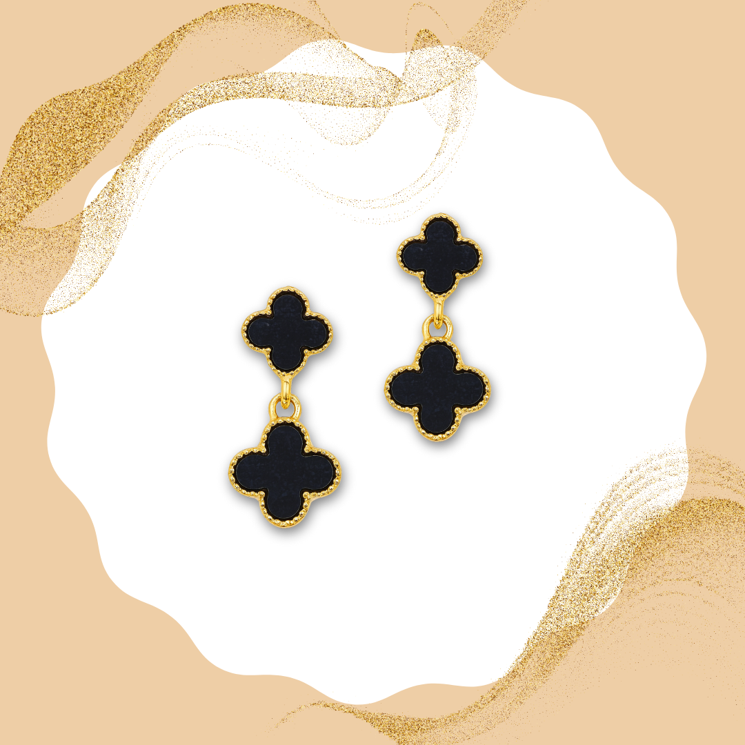 Elegant Black Clover Drop Earrings Anti Tarnish Stainless Steel