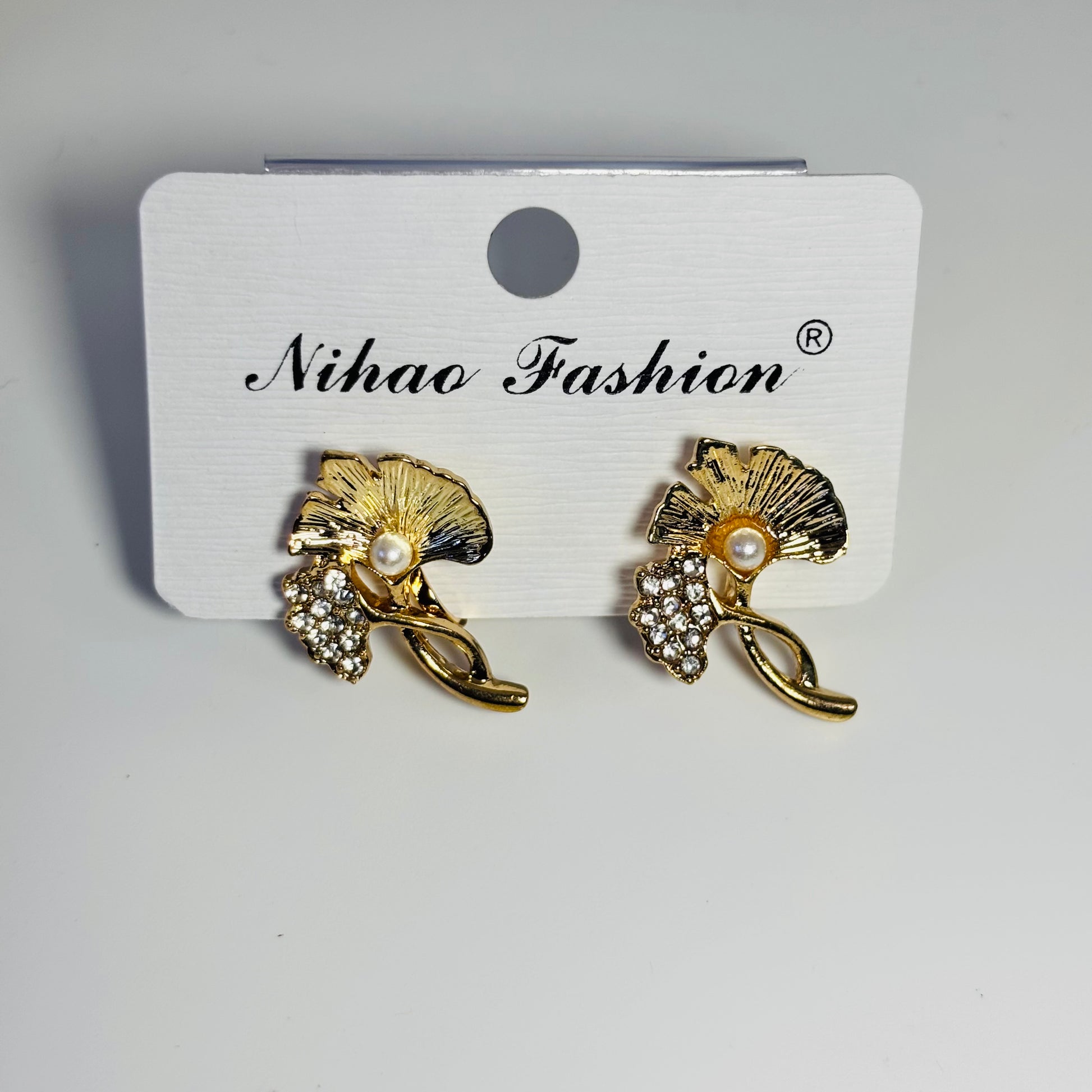 Elegant Floral Pearl Clip-On Earrings Anti Tarnish Stainless Steel
