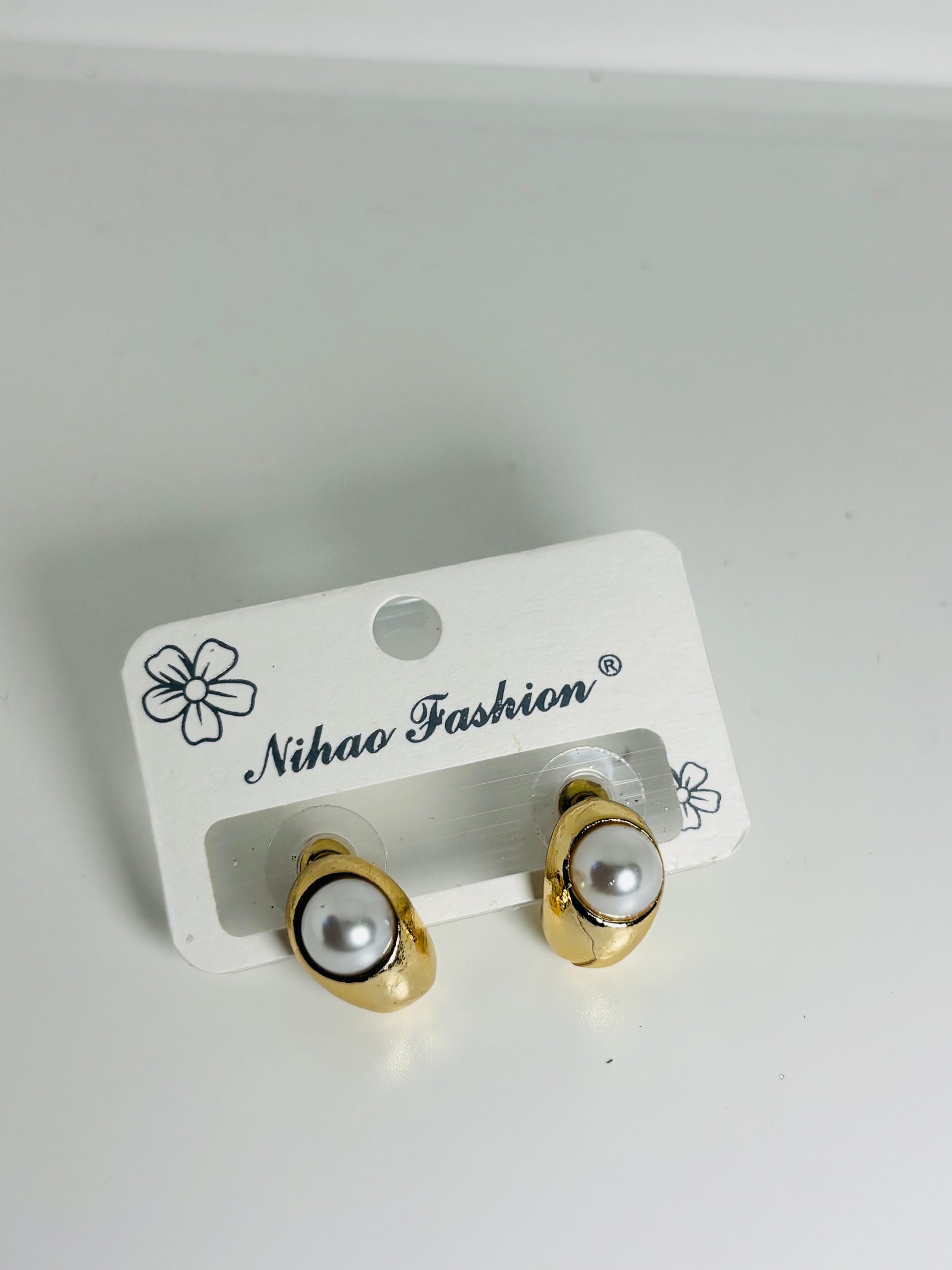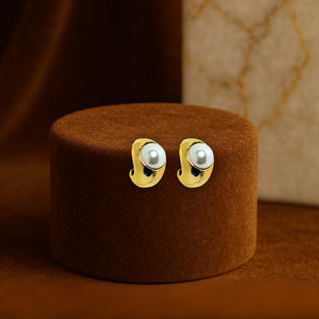 Elegant Gold Pearl Stud Earrings Anti Tarnish Stainless Steel