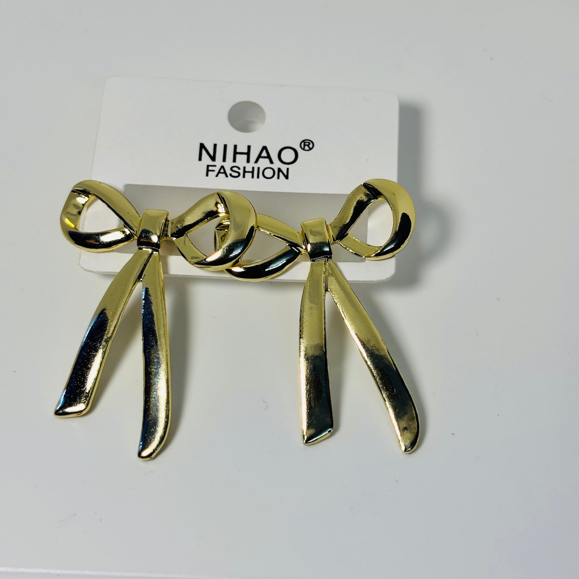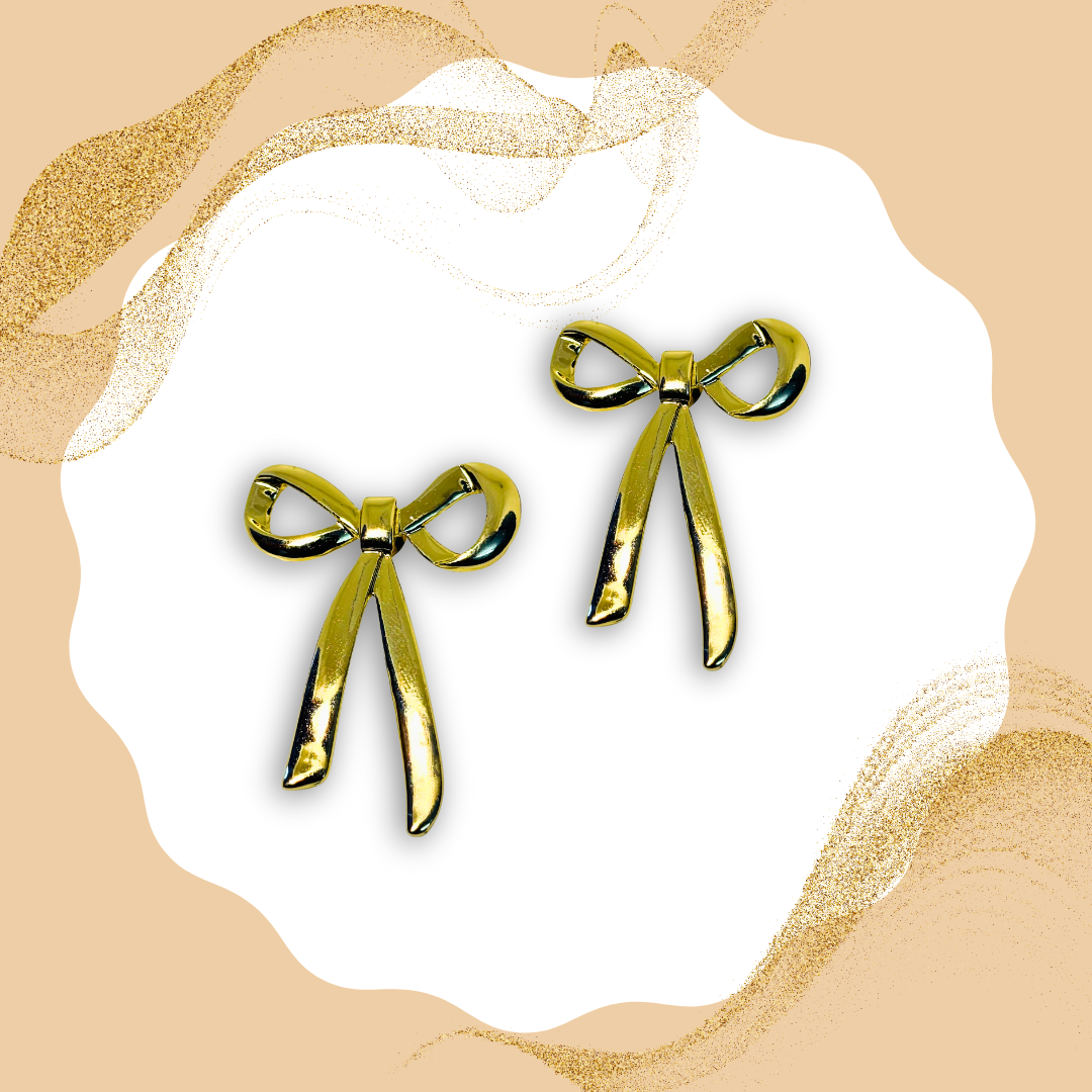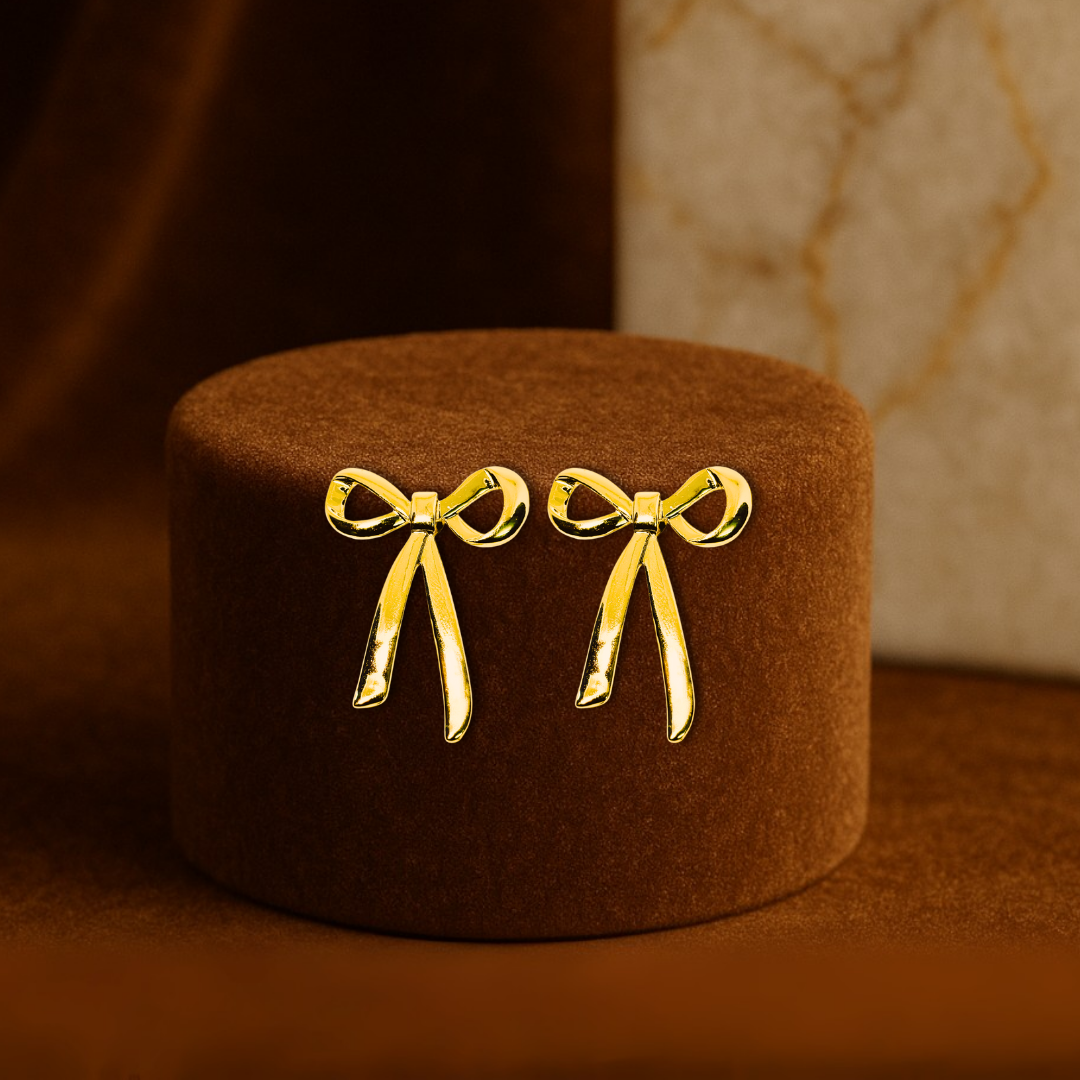Elegant Golden Bow Stud Earrings Anti Tarnish Stainless Steel