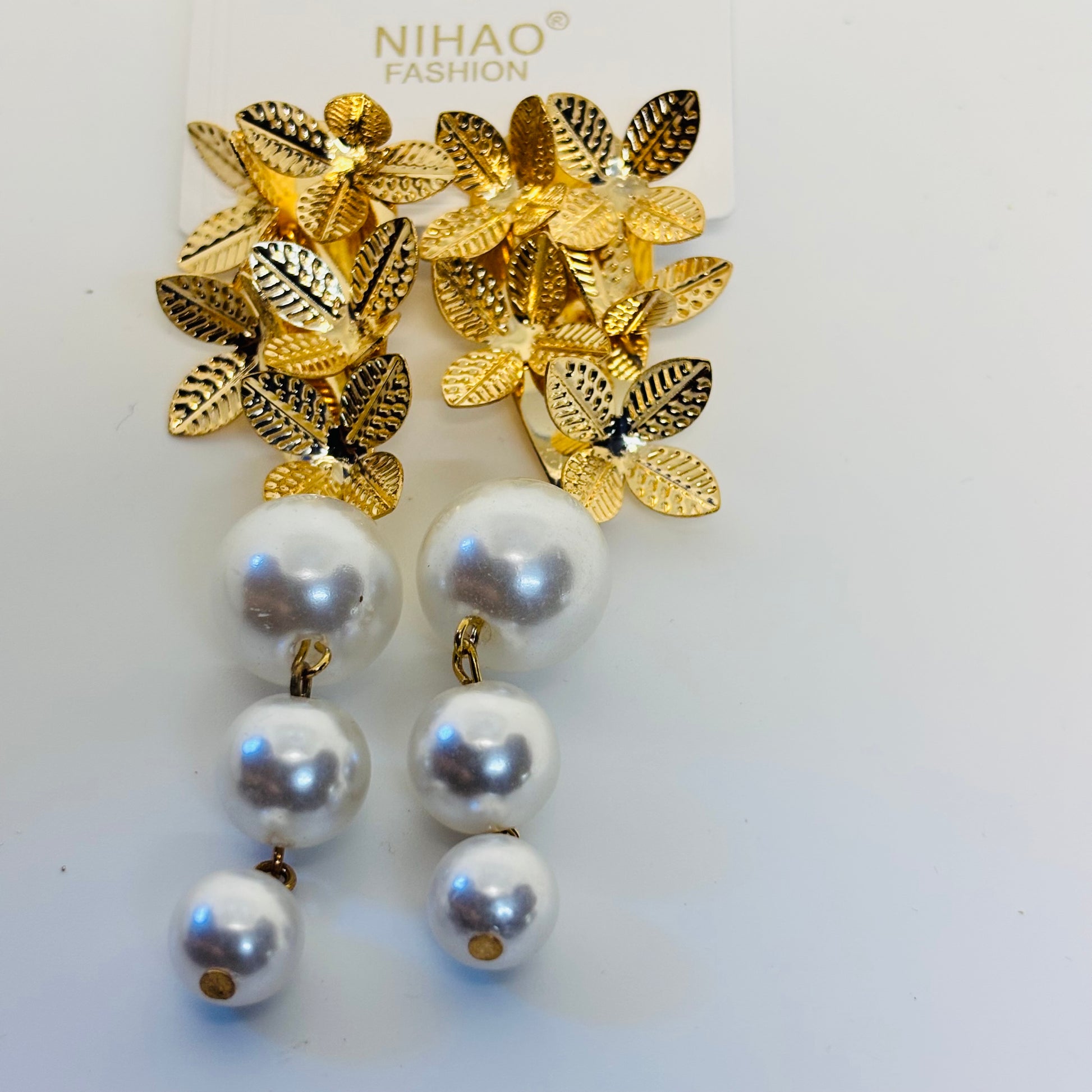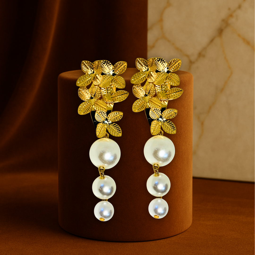 Glam Floral Pearl Drop Earrings Anti Tarnish Stainless Steel