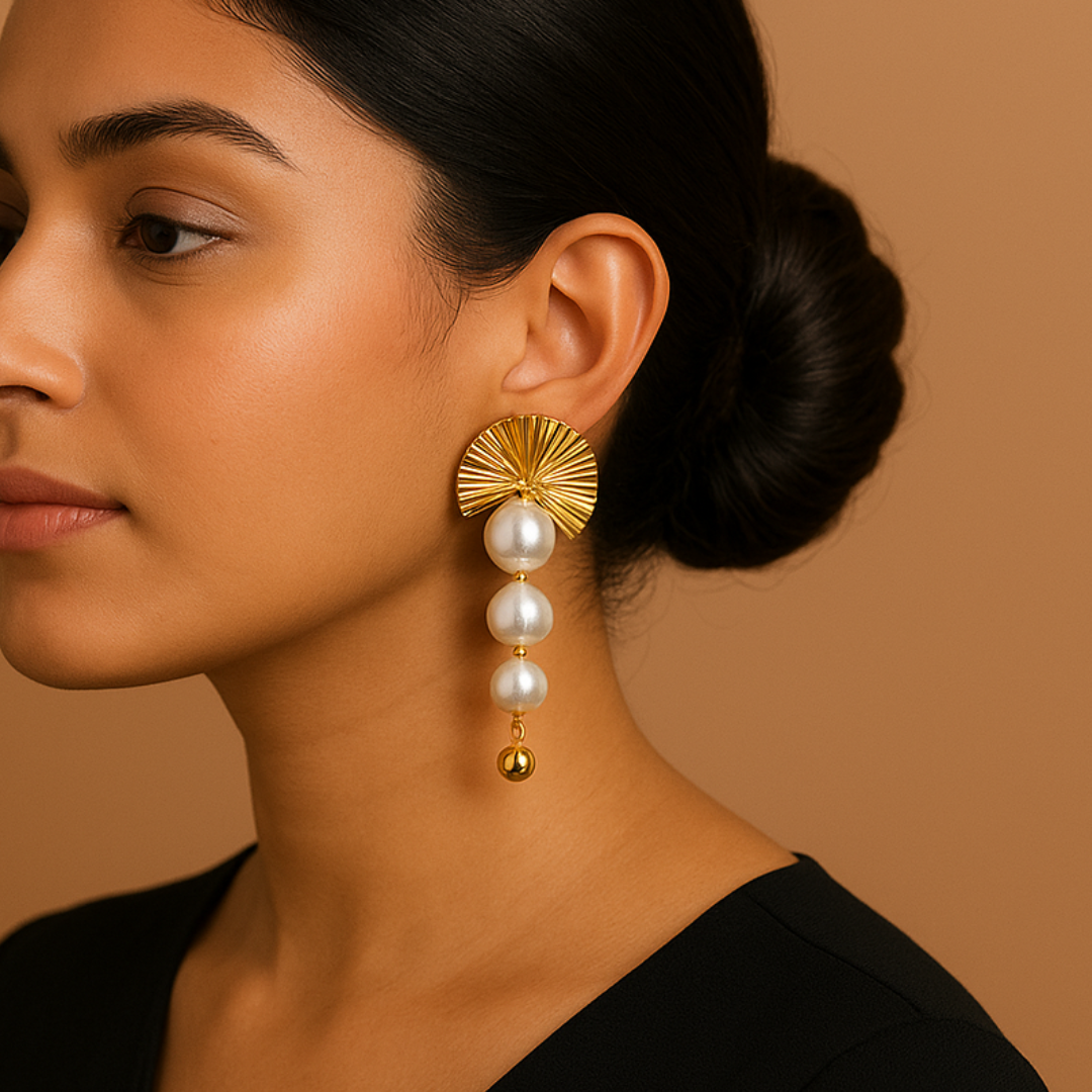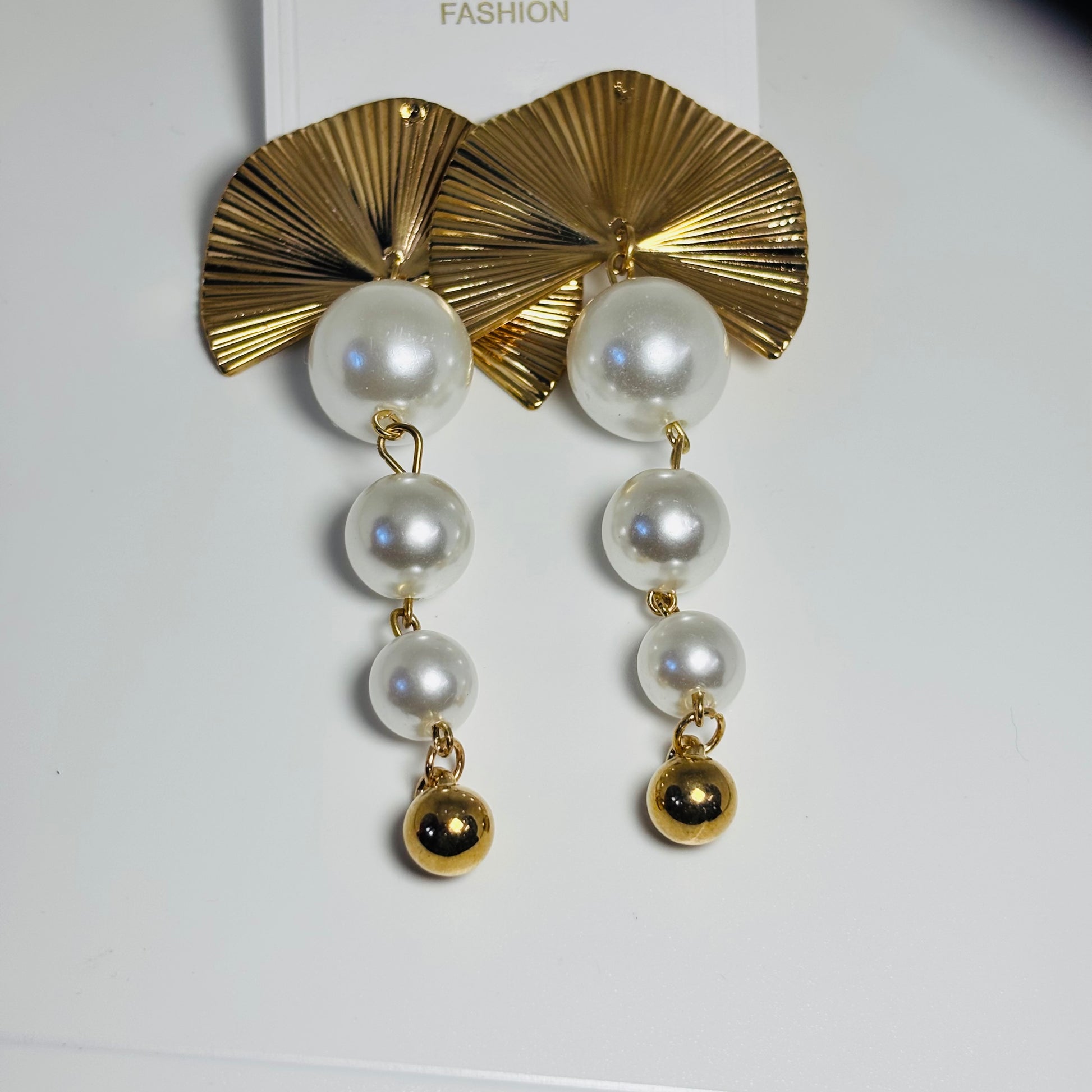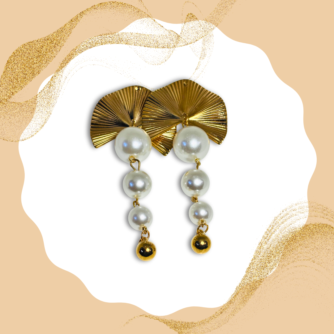 Glamorous Pearl Fan Drop Earrings Anti Tarnish Stainless Steel