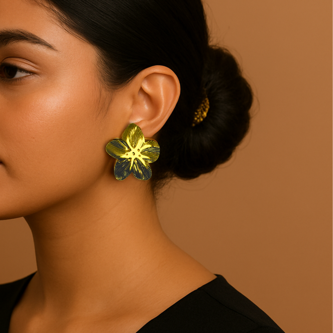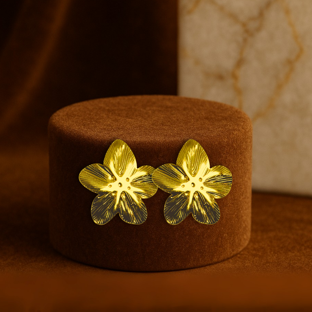 Golden Blossom Flower Stud Earrings Anti Tarnish Stainless Steel