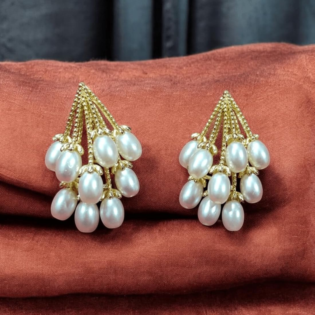 Graceful Korean Waterfall Pearl Earrings