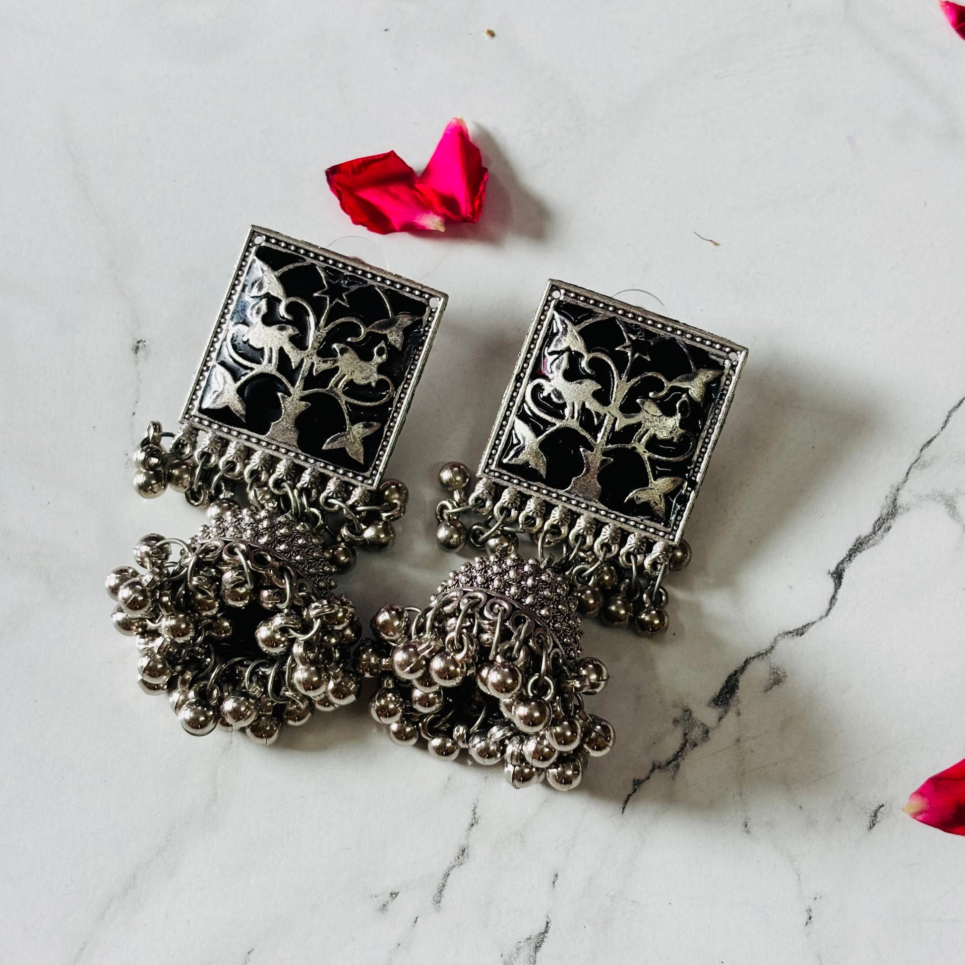 Discover the beauty of oxidised jewellery from kundan to temple art and jhumka patterns. Each necklace and earring set blends traditional charm with modern style, making it perfect for festive, casual or party wear.