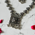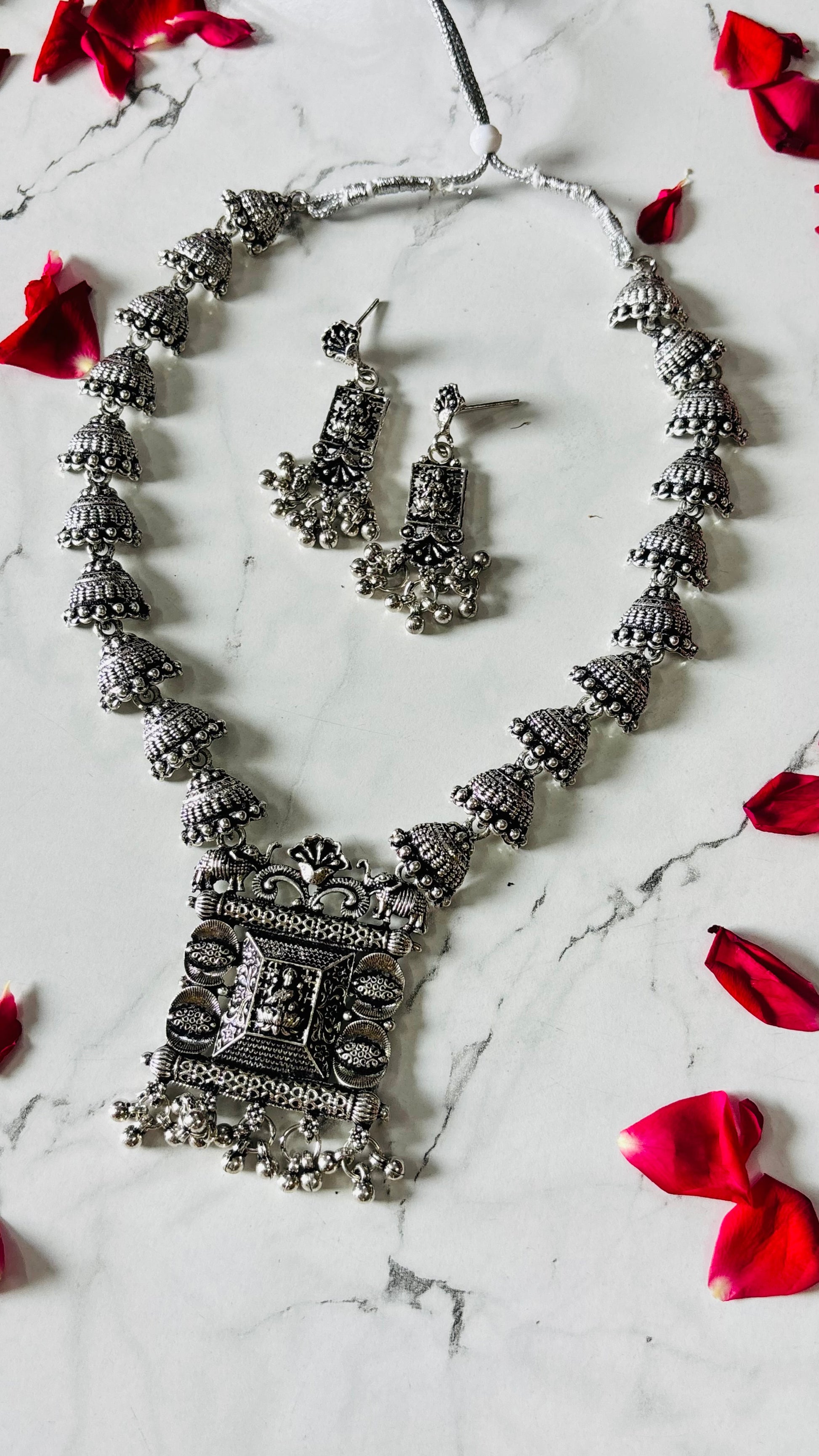 Oxidised Silver Jhumka Style long Necklace Earring Set