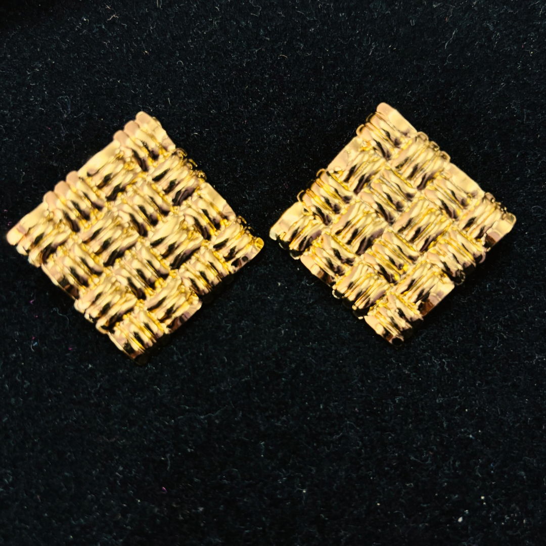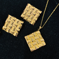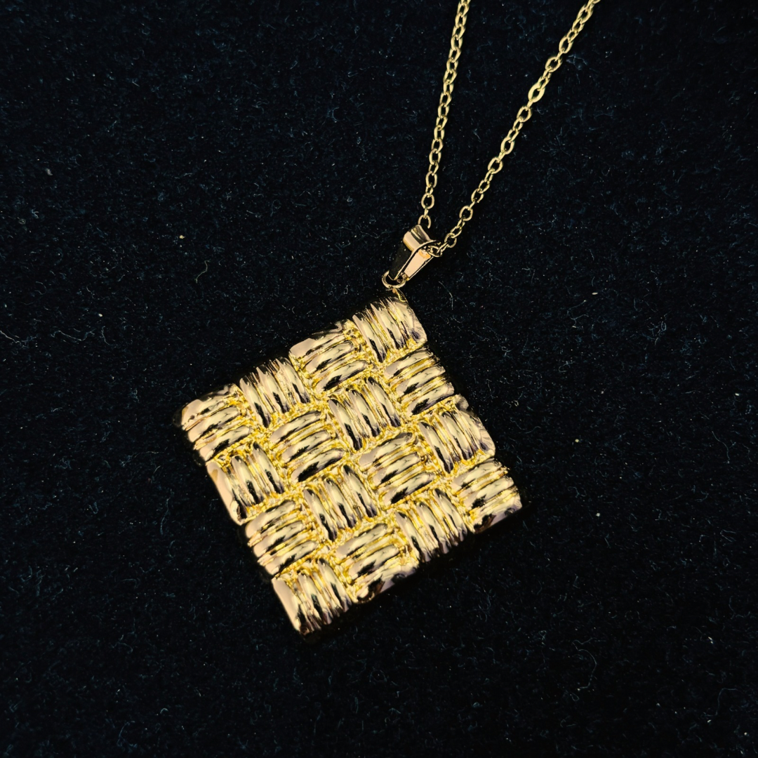 Square Weave Pendant Necklace Set – Anti-Tarnish Gold Plated Stainless Steel Jewelry