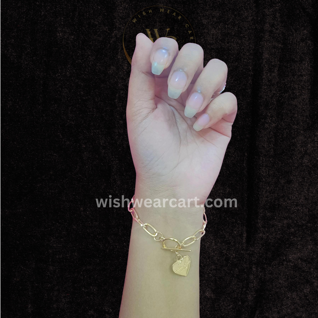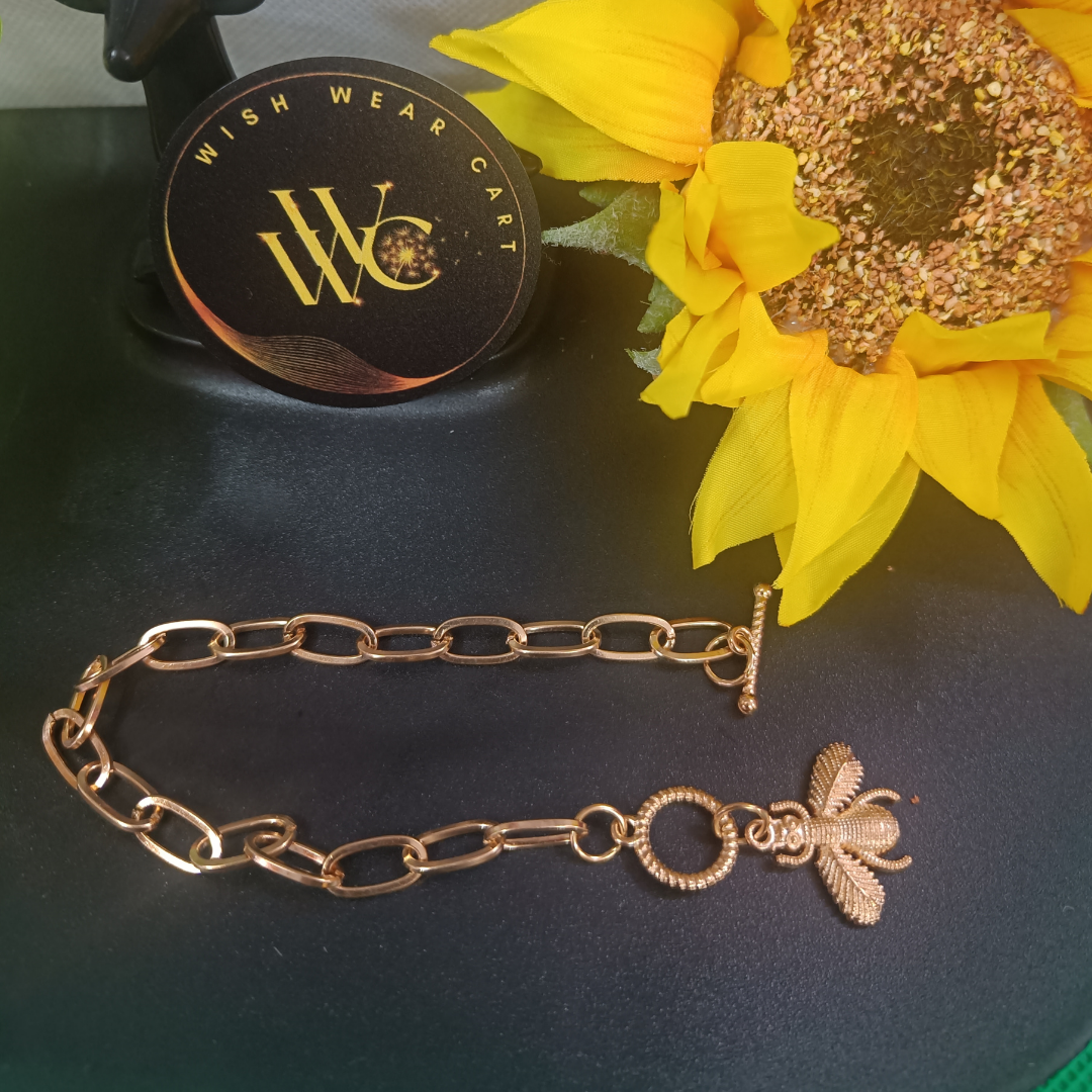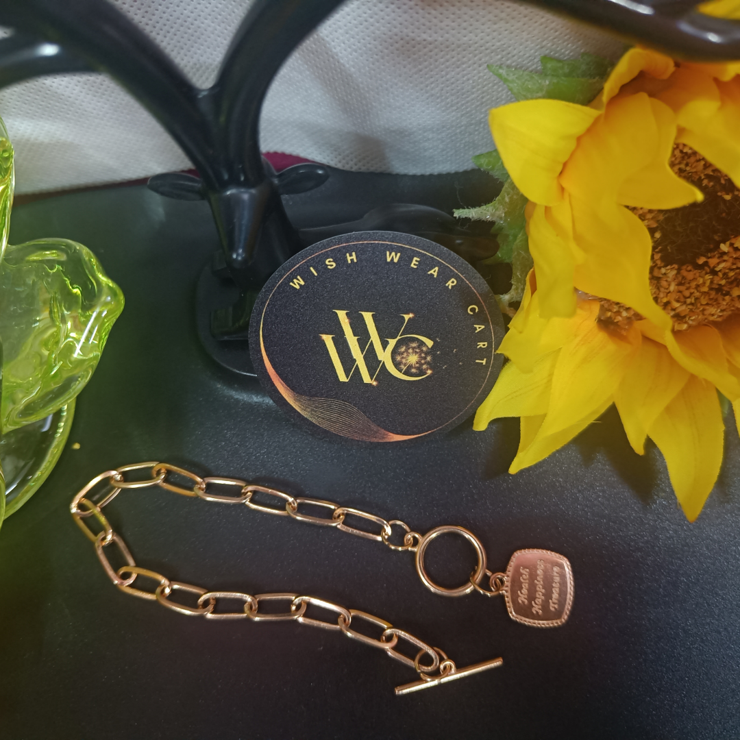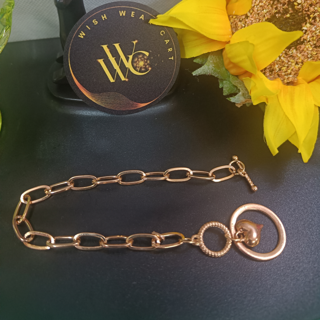 Stainless steel Rose Gold double chain easy self locking bracelet with unique design hangings