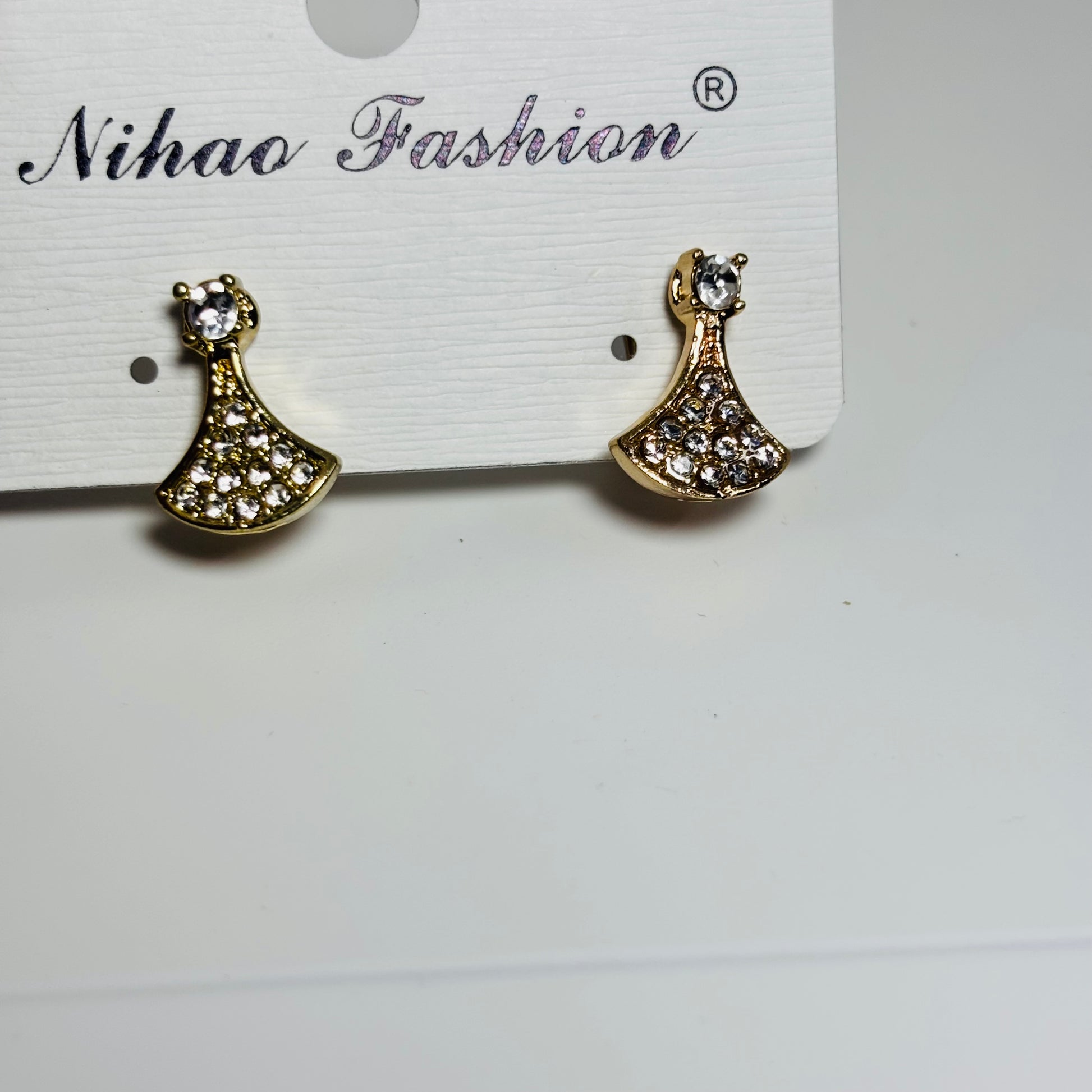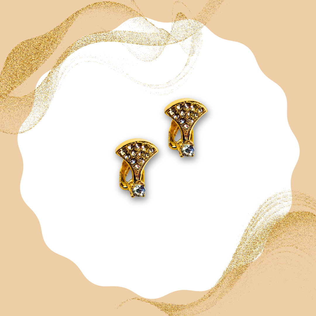 Stylish Fan Crystal Clip-On Earrings Anti Tarnish Stainless Steel