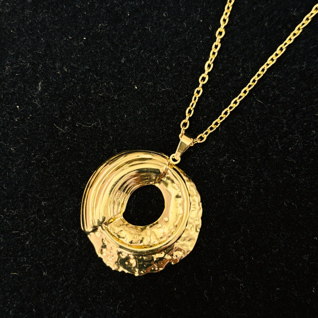 Textured Circle Pendant Necklace Set – Waterproof Anti-Tarnish Stainless Steel Jewelry