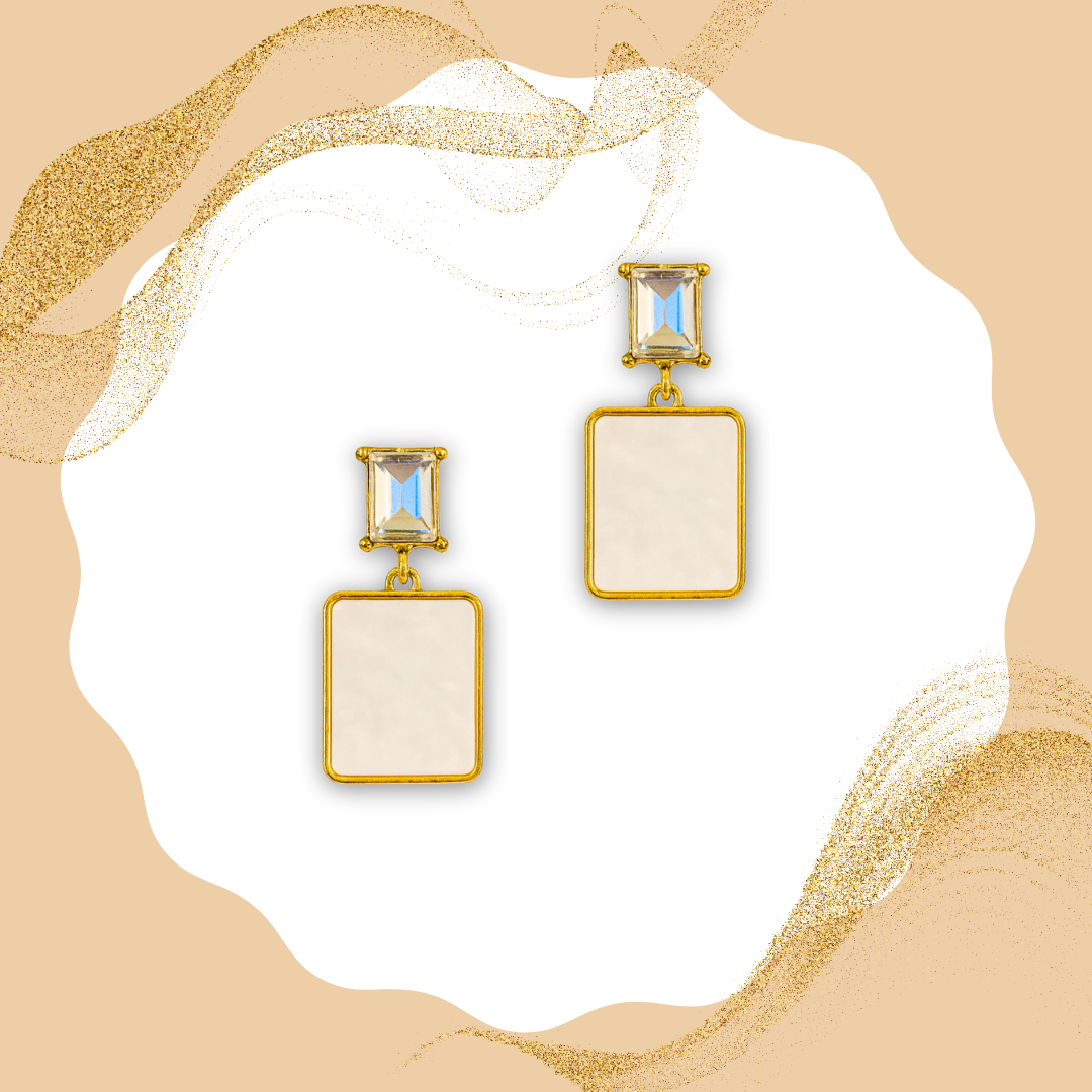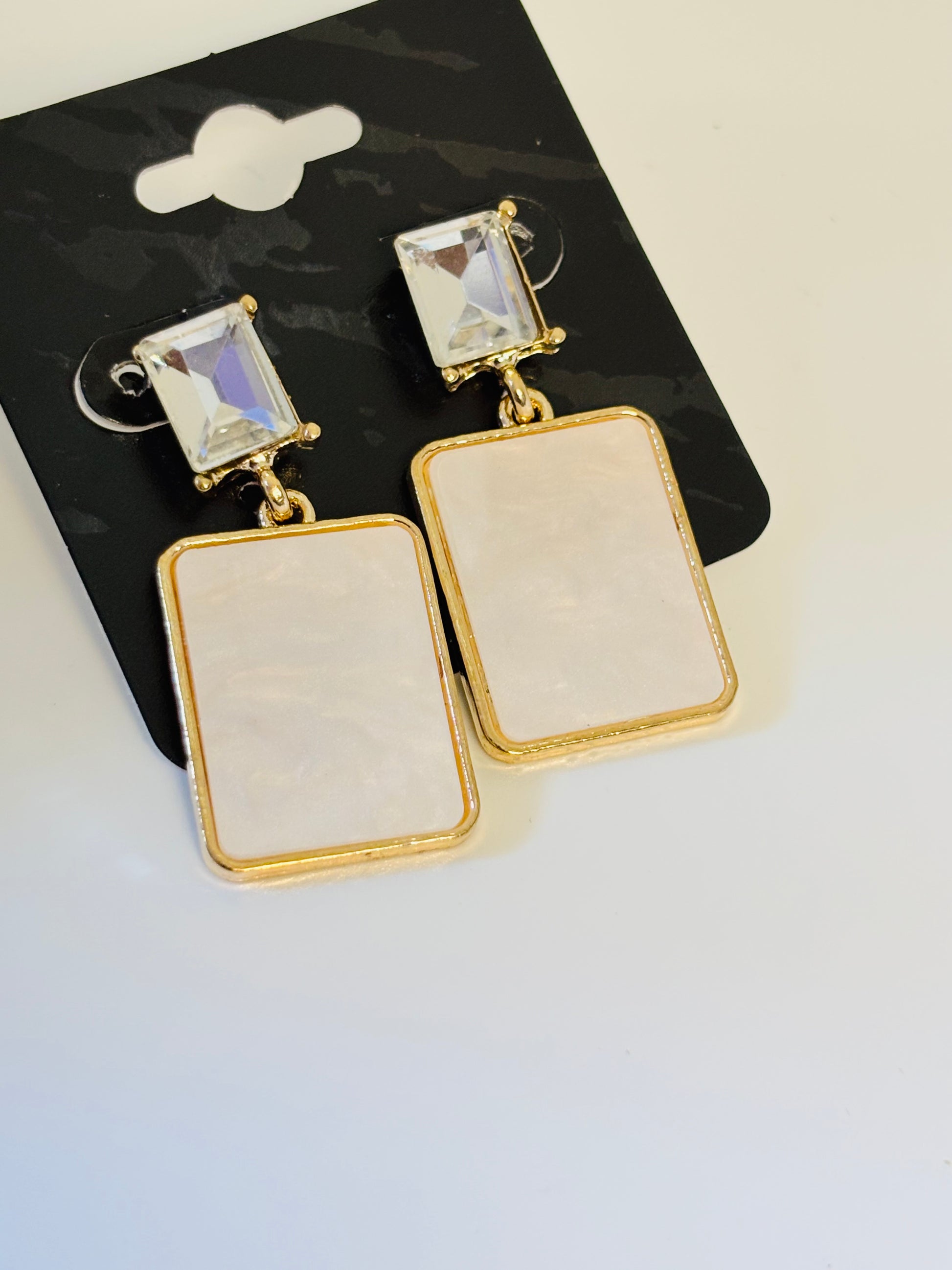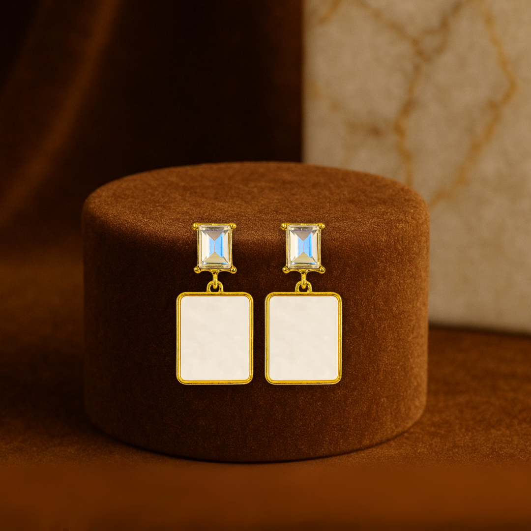 Trendy White Square Drop Earrings Anti Tarnish Stainless Steel