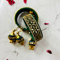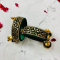 Traditional Handmade Kundan Bangles with Hangings - Green
