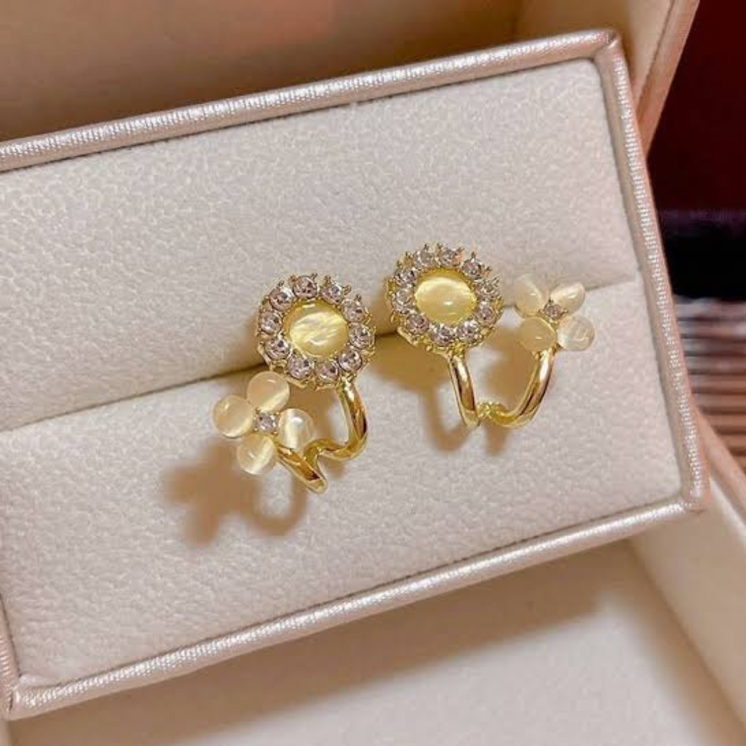 Yellow Crystal Floral Ear Cuff Stud Earrings
